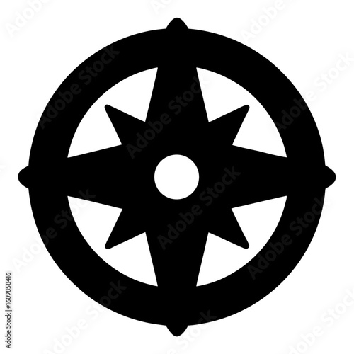 Black and White Compass Rose Illustration with Outer Circle Accents