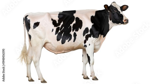 Black and White Holstein Friesian Dairy Cow Standing Isolated on White Background