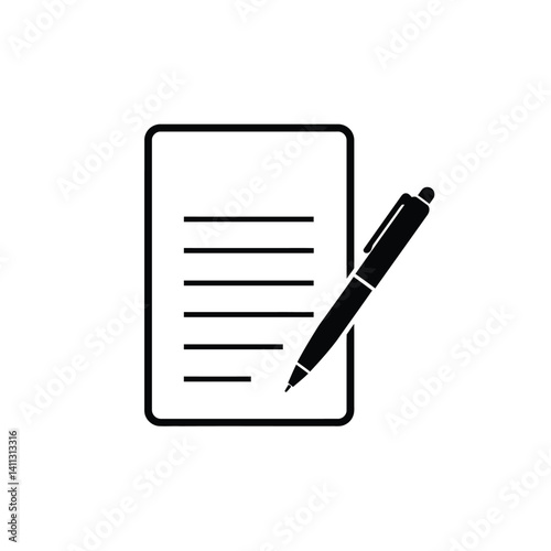 Black And White Icon Illustration Of Document Paper With Pen For Writing
