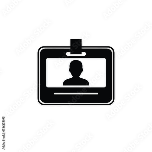 Black and white icon of a person identification badge