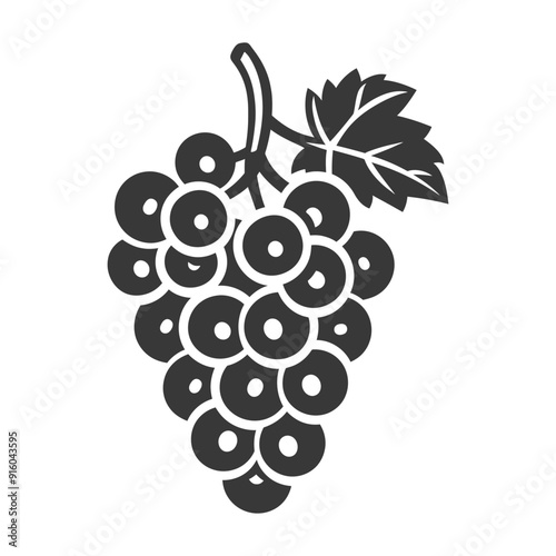 Black and White Illustration of a Bunch of Grapes with a Leaf
