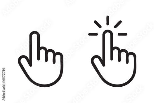 Black and white line art cursor icons showing hand pointer and active click selection