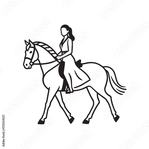 woman, horse, riding, equestrian, beautiful, body, elegant, stylish, outfit, vector, illustration, line art, black, white, drawing, vignetting, outline, silhouette, graceful, confident, minimal, minimalist, simple, chic, fashion, strong, female, rider, horseback, lifestyle, graphic, design, modern, artwork, aesthetic, decorative, posh, posture, athletic, feminine, contemporary, sport, leisure, stable, countryside, charming, equine, composition