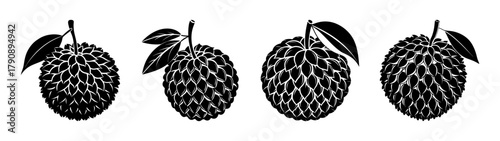 Black and white lychee fruit vector illustration tropical fruit drawing exotic fruit design element