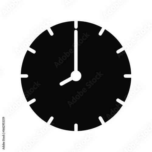Black and white minimalist clock icon showing time eight o'clock exactly