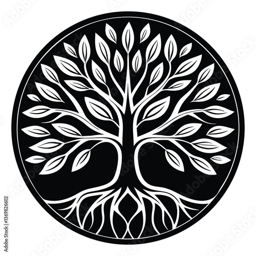 Black and White Ornamental Vector Tree with Floral and Tribal Elements