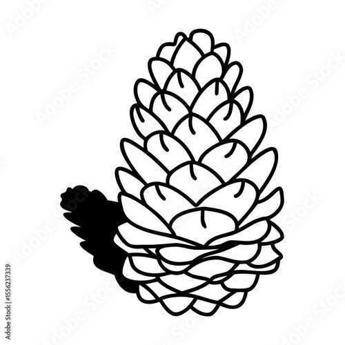 Black and white pine cone illustration with shadow on white background