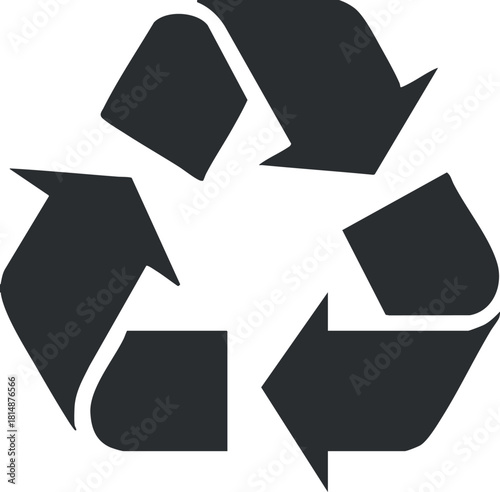 Black and white recycling symbol with three arrows forming a triangle, representing sustainability.