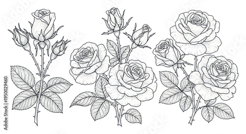 Black and White Rose Illustrations: Elegant Floral Line Art for Design