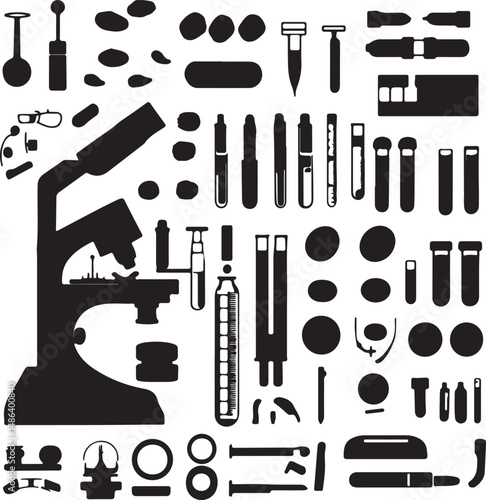 Black and White Science Lab Equipment Silhouette Vector Illustration