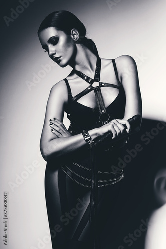 black and white sensual woman with whip