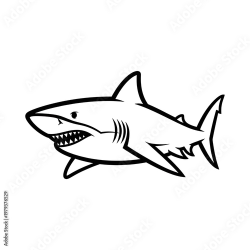 Black and white shark cartoon drawing.