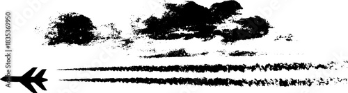 Black and white stencil of a flying plane with cloud contrast for urban design
