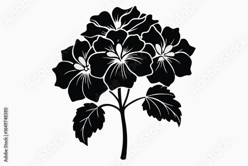 Black and White Stylized Hibiscus Flower Clipart Graphic with Stem and Leaves Design