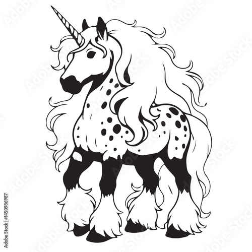 Black and white vector flat illustration: horse magical character, lineart for coloring books, ready to print