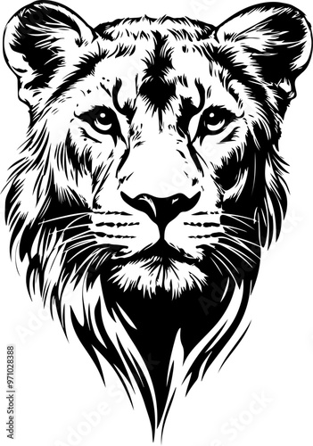 Black and White Vector Lion Head Illustration