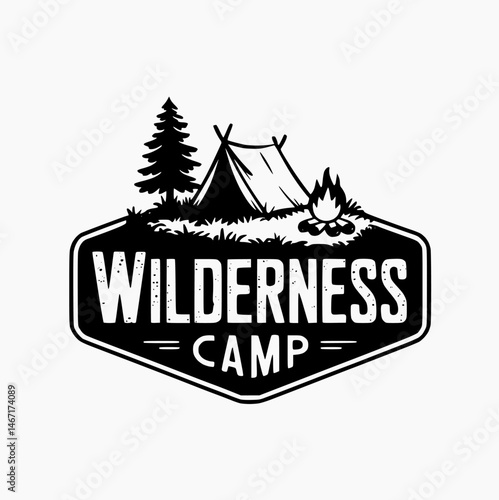 Black and white vector logo of adventure, bushcraft, hiking, wilderness