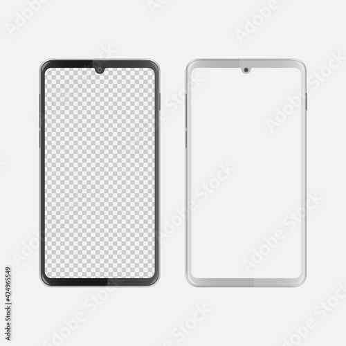 Black and white waterdrop notch smartphone with blank screen
