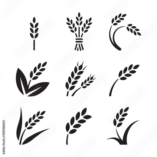 Black and White Wheat and Grain Icons Set
