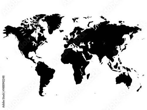 Black and White World Map Silhouettes – Flat and Globe Projections for Global Concepts, Design, and Education.