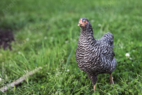 Black and White Young Chicken in Backyard