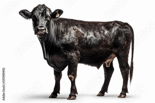Black angus cow on white background, created with generative AI
