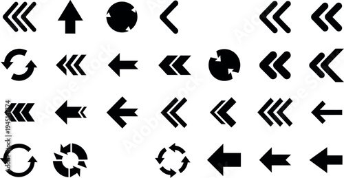 Black Arrow Icons Set Directional Symbols, Navigation Pointers, and Circular Refresh Signs Vector Illustration