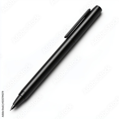 Black ballpoint pen isolated on white background, perfect for graphic design and advertising projects