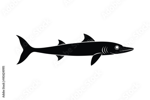 Black Barracuda Vector Silhouette Icon.
