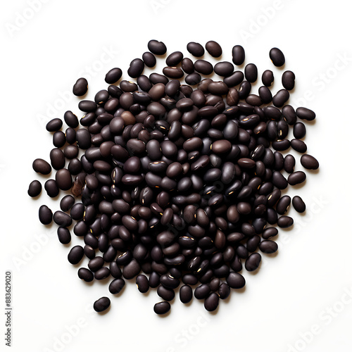 Black beans isolated on white background. Top view. Flat lay.