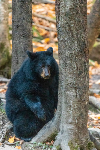 Black bear in forest at national park la Mauricie.Quebec. Canada.