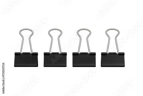 Black binder clips lining up on transparent background