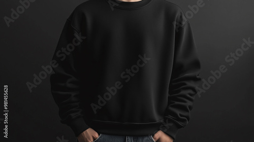 Black Blank Oversize Sweatshirt on a Model Used as a Mockup for Design Presentation