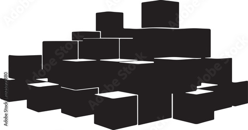 Black boxes stacked in a chaotic messy pile formation