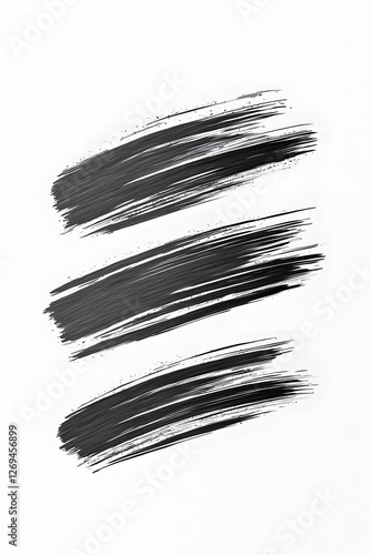 Black brush paint strokes, ink grungy decoration elements isolated on white background
