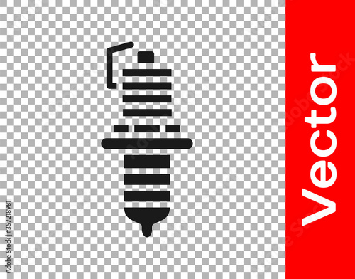 Black Car spark plug icon isolated on transparent background. Car electric candle. Vector Illustration.