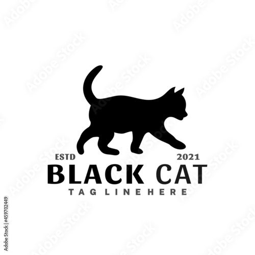 Black Cat Silhouette Logo Vector Design, Creative Logos Designs Concept for Template