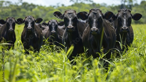Black Cattle: Angus Breed Herd Grazing in Sunny Pampas Farm