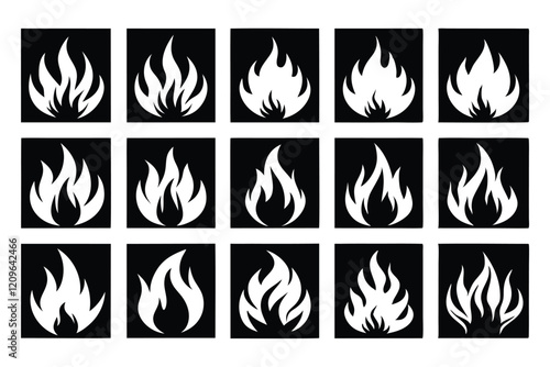 Black Color Fire Flame Vector Set