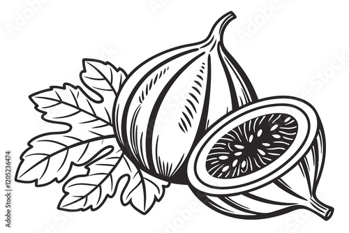 black color line art Indian fig fruit silhouette vector illustration white background C.eps