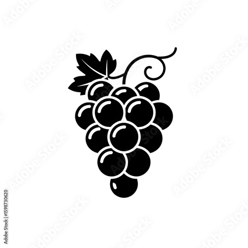 Black color silhouette illustration of grapes with white background