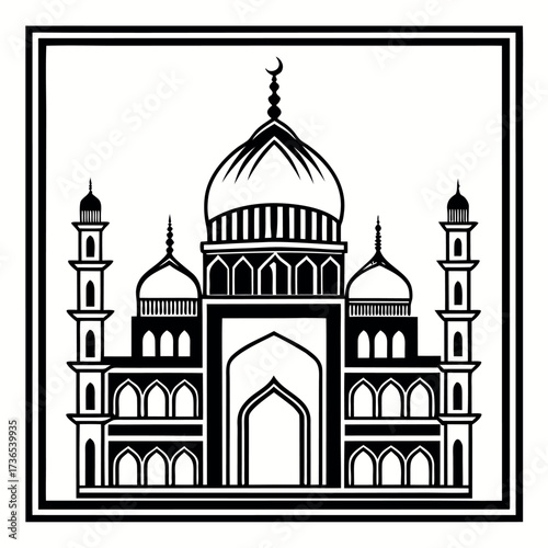 Black colour Islamic geometric pattern frame silhouette vector illustration, solid white background (4).eps