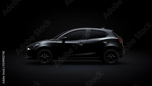 Black Compact Hatchback Car Side Profile in Dark Studio Lighting