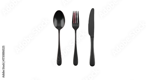 Black Cutlery Set: Spoon, Fork, and Knife on Black Background
