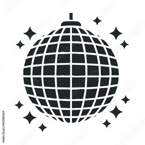 Black disco ball with sparkles icon on white background