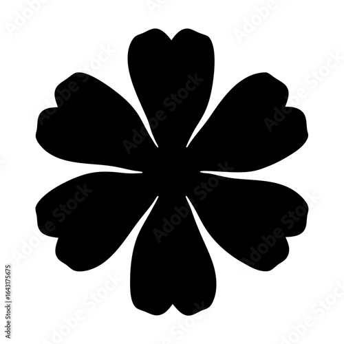 Black five petal flower with heart shaped ends, design element, blossom