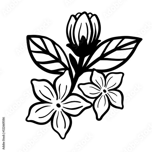 Black floral line art, floral handwriting.