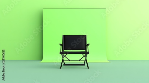 Black Folding Chair Green Studio Backdrop Minimalist Photography