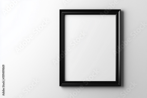black framed white picture with no picture inside. The frame is black and the wall is white