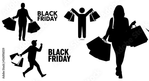 Black Friday Black Vector Silhouette on White Background | Shopping Sale Illustration | Discount & Promotion Graphic | Minimalist & Editable Design